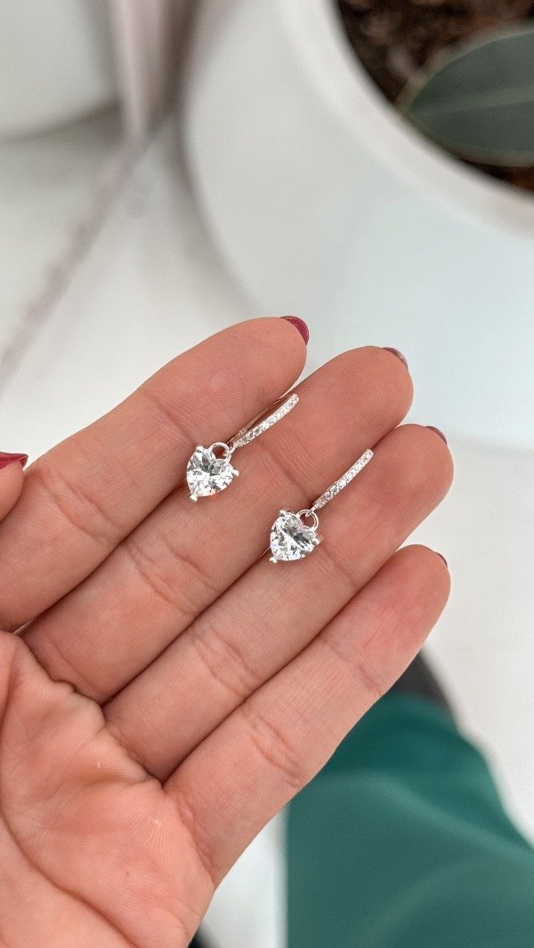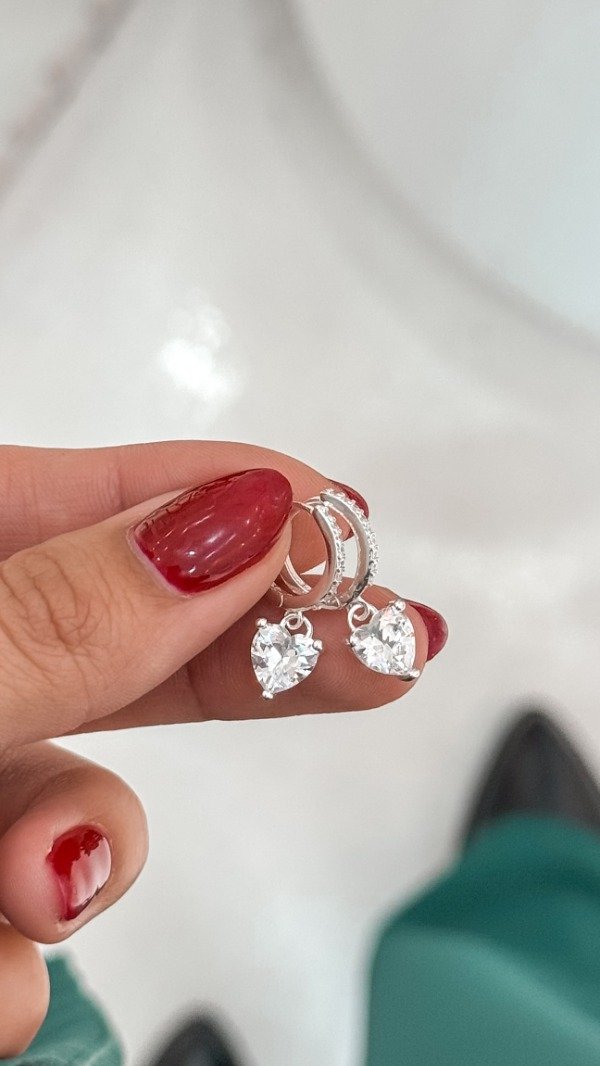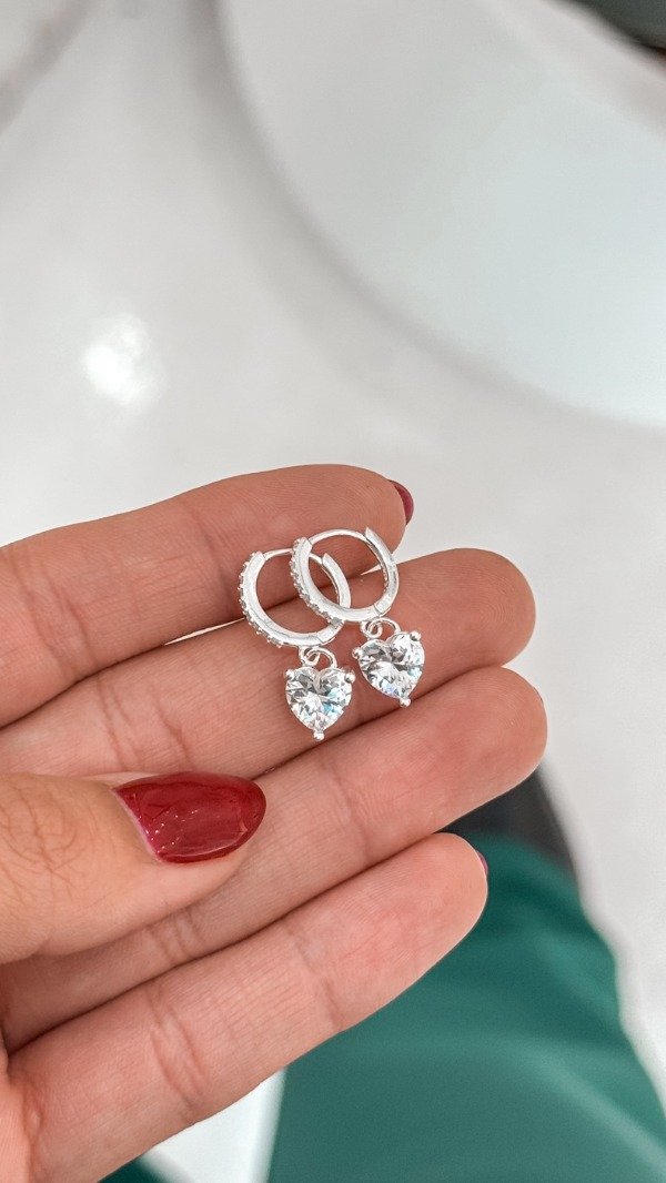 Argollas cierre huggie con corazon colgante con cubic y strass.