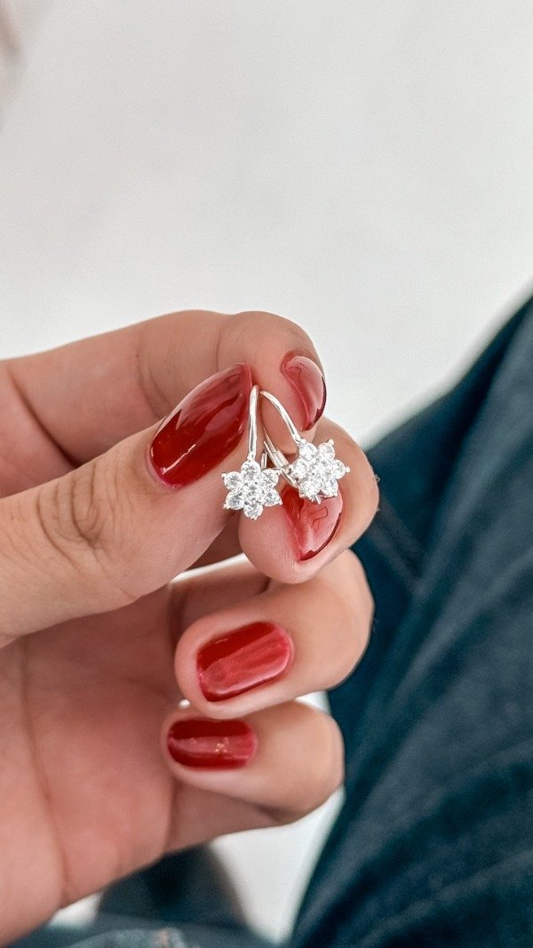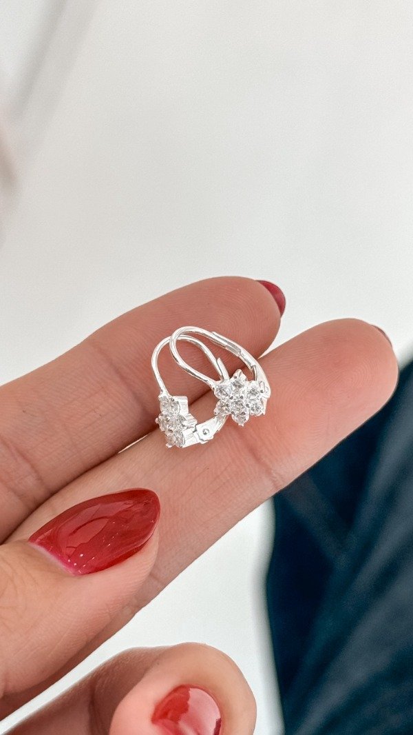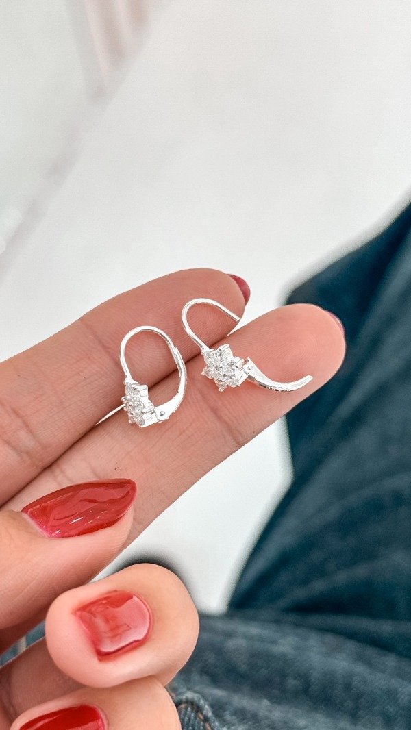 Argollas cierre frances de florcitas con cubic blanco.