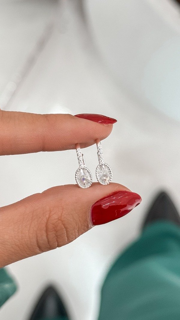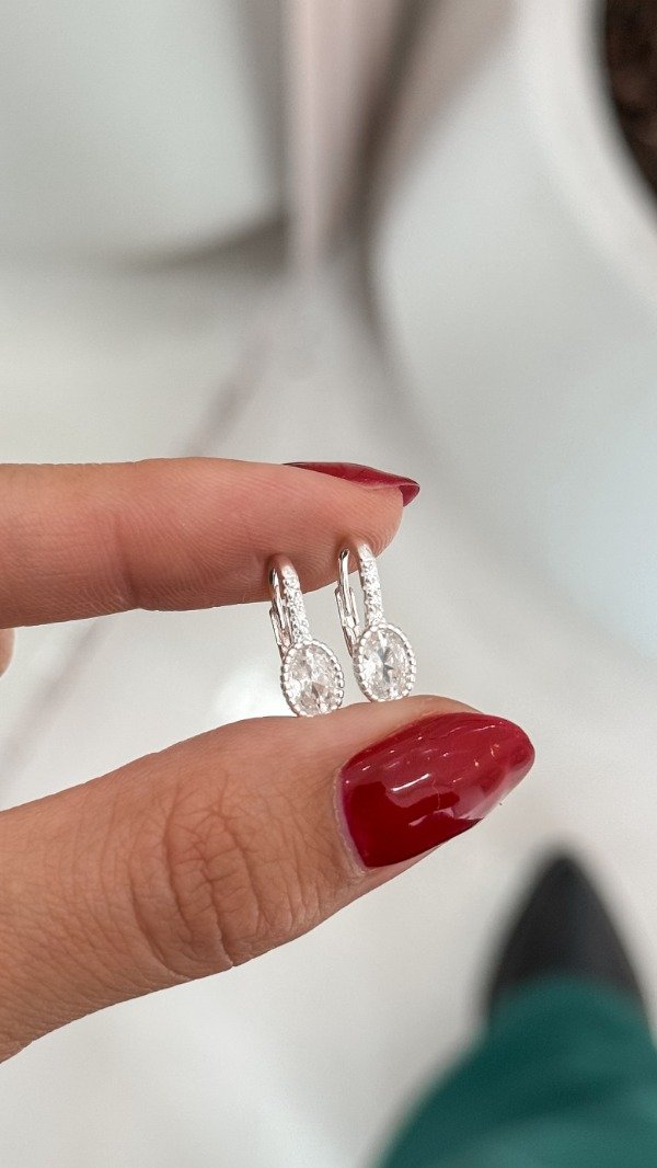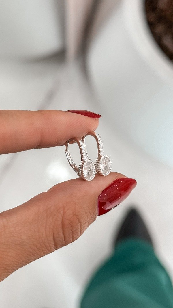 Argollas cierre frances en forma ovalada con cubic y strass.