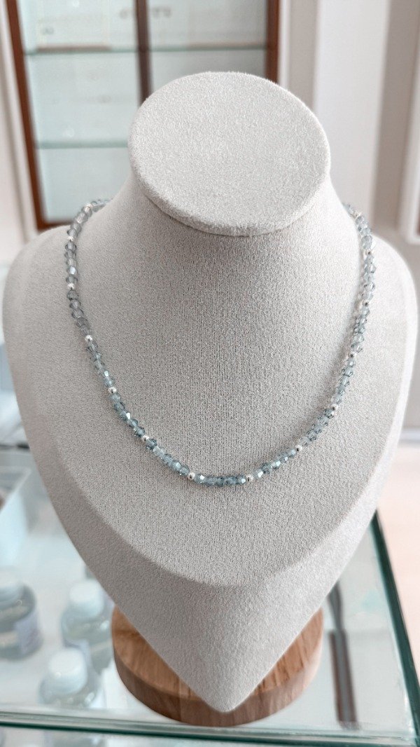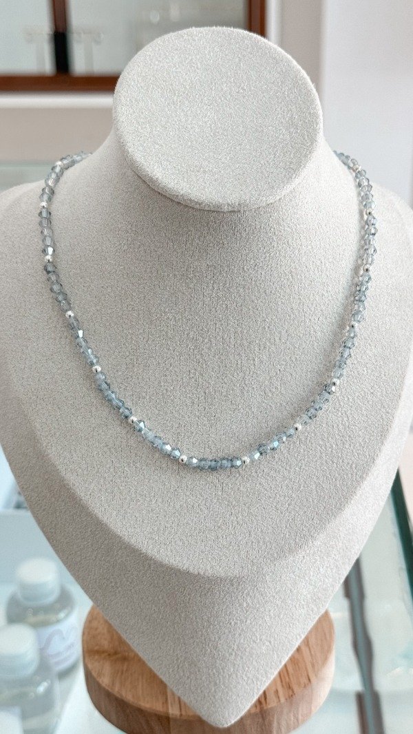 Chocker con bolitas de cristal color gris y apliques de plata 925.